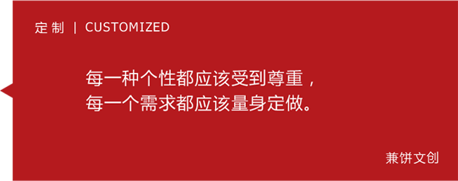 兼餅文創是中國文創產品設計開發領域重要機構之一, 兼餅文創,創立于嶺南文化中心羊城廣州,根植豐色中國專業美學基因,利用 23年服務世界500強企業供應鏈資源優勢,堅持產品賦能作為企業與消費者之間溝通的橋梁,塑造人格化的品牌形象,以“原創設計”打造特色文創精品,以創造美好生活和情景空間將文化創意設計 、智能科技 、生活美學進行完美結合跨界創新。引領新時代客戶的個性化消費需求,讓企業品牌成為消費者的第一首選!